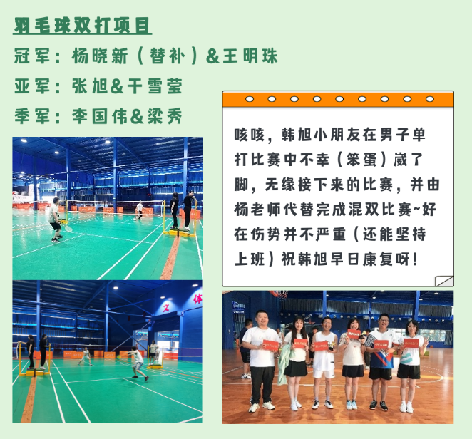相信通過這次運(yùn)動(dòng)會(huì),大家在合作和對抗中都對其他人有了新的認(rèn)知,在未來的工作和生活中,能夠更加融洽更加默契!